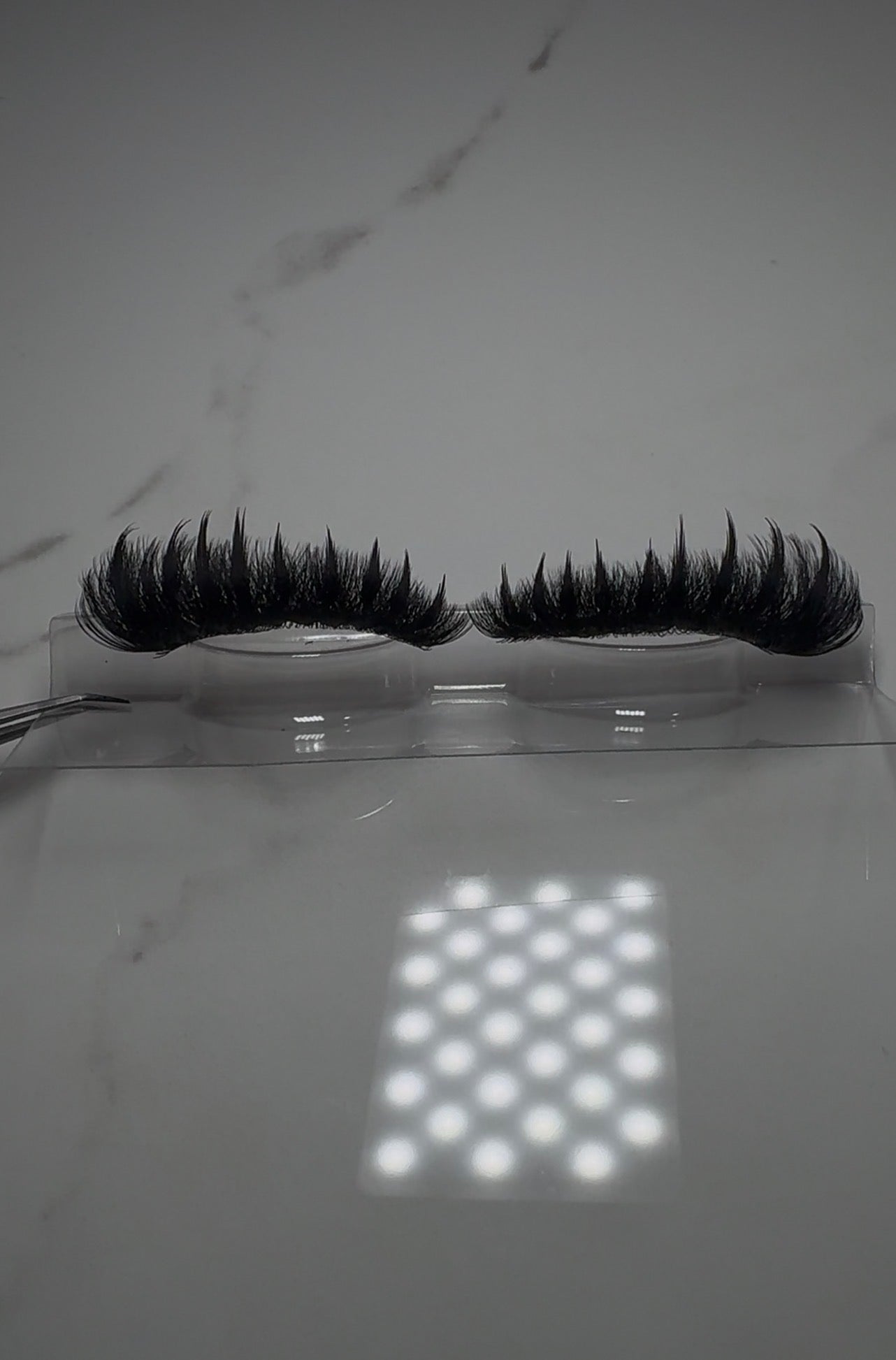 Fluffy spiky wispy strips that open the eyes and give a doll-eye effect. Lightweight, reusable, and handmade for a full glam look without extensions.